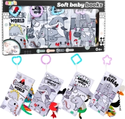 Set van zachte sensorische boeken voor baby's is de ideale keuze voor de kleinste kinderen vanaf de eerste levensdagen. Elk boek heeft een verschillend thema: de wereld van dinosaurussen, zeedieren, landdieren en een boerderij.