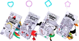 De boeken zijn voorzien van praktische handvatten voor eenvoudige bevestiging aan een kinderwagen, bed of autostoeltje, waardoor gebruik overal mogelijk is. Ze zijn een geweldig idee voor een eerste educatief cadeau dat de ontwikkeling van het kind in het vroege levensstadium ondersteunt. Dit product bevordert actief het plezier en cognitieve vaardigheden van kinderen en biedt mogelijkheden voor gezamenlijke tijd met ouders.