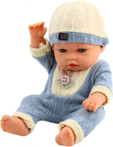 Babypop in een gebreid pakje met mutsje is een realistische en esthetisch vormgegeven speelgoedpop, ideaal als speelkameraadje voor kinderen vanaf 3 jaar. Ondersteunt de kinderlijke verbeelding en stimuleert zorgzame instincten.