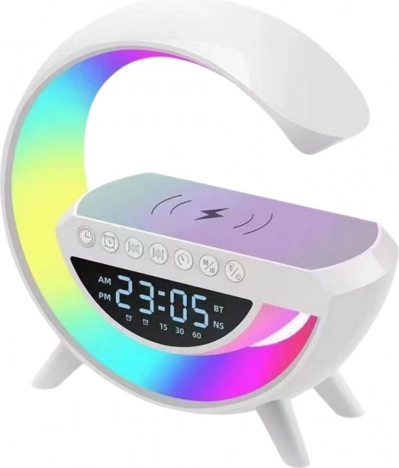 De moderne G63 nachtlamp is ideaal voor elke slaapkamer, kinderkamer of kantoor. Hij combineert functies van slimme verlichting, wekker, geluidsapparaat en inductielader, en biedt zo comfort en functionaliteit in één elegant apparaat. Dankzij de zonsopgangssimulatie is wakker worden natuurlijker en aangenamer, wat bijdraagt aan een beter welzijn vanaf de ochtend. Met traploze helderheidsregeling en een keuze uit verschillende kleurmodi kun je de sfeer aanpassen aan elke situatie - van ontspannen voor het slapen tot wakker worden in de ochtend.
