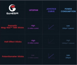 - Mag-Res TMR-sticks, analoge Hall-effect-triggers, D-pad, frontale microknoppen