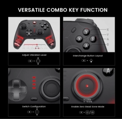 Verbind de controller zoals jij wilt – 2,4 GHz voor minimale latentie, Bluetooth voor snel koppelen of bekabeld voor maximale stabiliteit. Asymmetrische vibratiemotoren zorgen voor realistische haptische feedback en de frontale microknoppen op e-sportniveau garanderen snelle en trefzekere input. Aanpasbare RGB-effecten en snel wisselen van profielen laten je de controller precies afstemmen op jouw game en stijl.