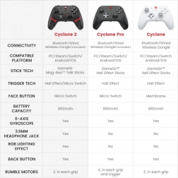 De GameSir Cyclone 2 is een veelzijdige gamecontroller voor SWITCH, pc, Android en iOS, die hoge precisie combineert met maximaal comfort. De nieuwe Mag-Res TMR-sticks leveren een stabiele respons en lange levensduur, terwijl de analoge triggers met Hall‑effect zorgen voor verfijnde dosering en een razendsnelle Hair Trigger-modus voor FPS- en actiegames.