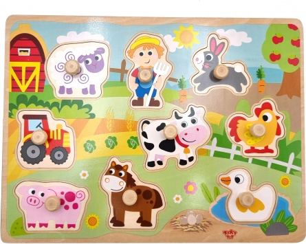 Deze houten puzzel met knoopknopjes is een geweldige hulp voor eerste leermomenten en zelfstandig spel. Elk stuk past precies in de gefreesde uitsparing op de plaat, zodat het kind logisch denken, geduld en correct vormtoewijzen eenvoudig traint. De heldere boerderijillustraties nodigen elke dag uit tot ontdekken en plezier.