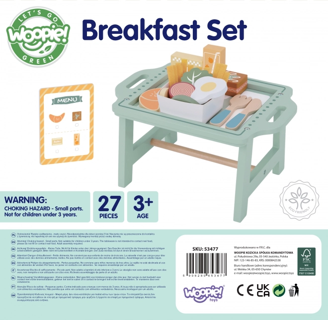 De Woopie Green Ontbijtset met Dienblad en Houten Accessoires is meer dan alleen speelgoed – het is een manier om je kind te inspireren tot nieuwe culinaire avonturen. Dankzij de realistisch ogende houten elementen en het stijlvolle dienblad kan je kind zich volledig onderdompelen in het spel. Geschikt voor kinderen vanaf 3 jaar; deze set bevat maar liefst 26 onderdelen gemaakt van natuurlijk hout, wat zorgt voor duurzaamheid en veiligheid.