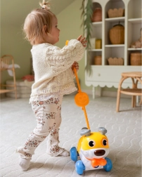 Gebruik als duwspeelgoed met een lange stang of als trekhondje aan een tuigje. Perfect voor de ontwikkeling van lopen en coördinatie.