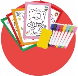 Alles is inbegrepen voor direct gebruik: 8 drooguitwisbare stiften, een uitwis-sponsje, een set gekleurde bouwsteentjes en 18 dubbelzijdige kaarten voor herhaald oefenen. De analoge klok met beweegbare wijzers helpt bij het leren klokkijken. Stabiele pootjes en een praktisch handvat maken dragen en veilig gebruik eenvoudig.