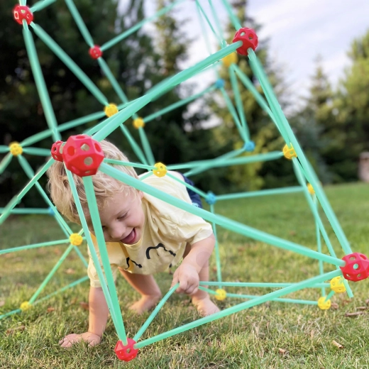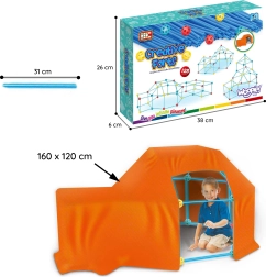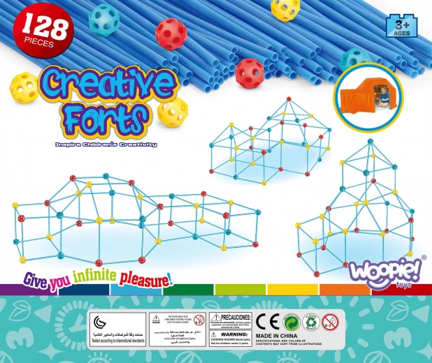 De constructieset van het merk WOOPIE wekt de grote bouwer in je kind tot leven! De set bevat 128 onderdelen, waaronder rietjes, verbindingsbuizen en materiaal om de constructie te bedekken. Hiermee kun je ruimtelijke bouwwerken maken, zoals een tent die je met stof kunt bedekken. Ideaal voor creatieve pret zowel thuis als buiten.