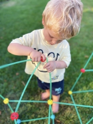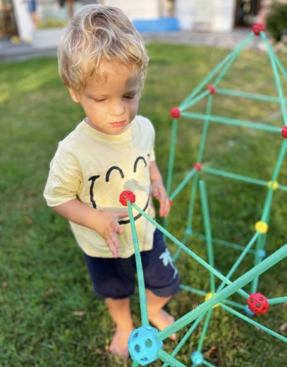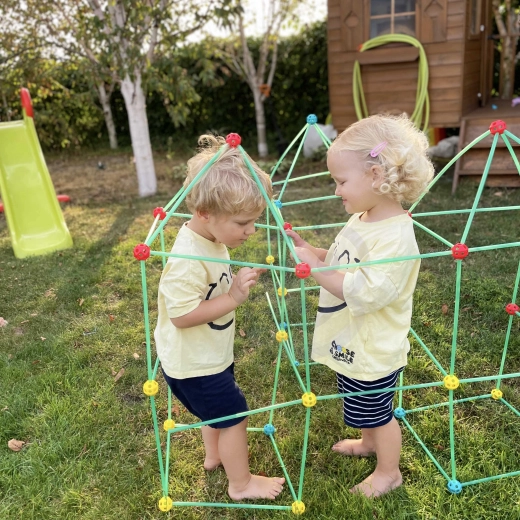De set is ideaal voor de ontwikkeling van de creativiteit van je kind. Hij bevat in totaal 128 onderdelen, waarmee je verschillende ruimtelijke constructies kunt bouwen, inclusief een tent.