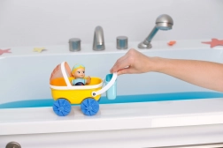 Maak van het badmoment een spannend avontuur met pop Emma en haar badkinderwagen. Het speelgoed voor kinderen vanaf 1 jaar heeft echt werkende wielen, een slimme zonneklep als zeef, een afneembaar mandje en een pop die na het draaien van de armpjes schoolslag en vlinderslag zwemt. Dankzij de zuignappen blijft hij stevig aan het bad zitten, zonder geknoei.