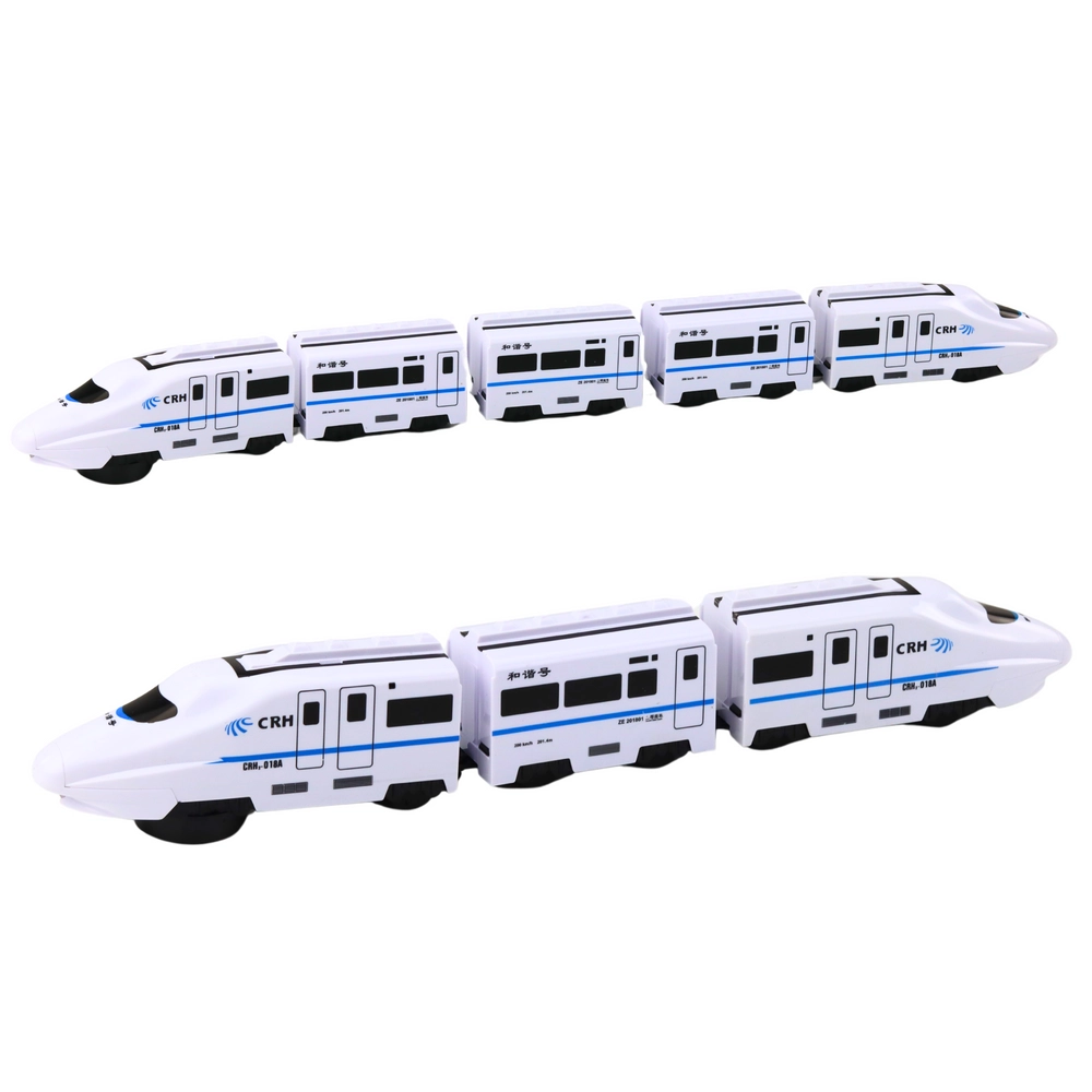 Onze interactieve trein is geïnspireerd door de hogesnelheidstreinen in China, heeft zwarte ramen, blauwe strepen en Chinese karakters op de romp voor een realistische uitstraling. Het is een speelgoed met een "bump i go" functie, waarmee de trein automatisch van richting verandert bij obstakels.