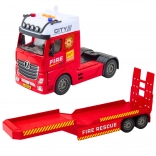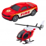 De brandweerset is bedoeld voor kinderen die van hulpverleningsvoertuigen houden. De set bestaat uit een grote trekker-vrachtwagen, een rode reddingswagen en een helikopter. Alle onderdelen hebben een kenmerkende rood-gele kleur en een ontwerp geïnspireerd op de brandweer.