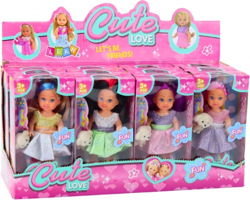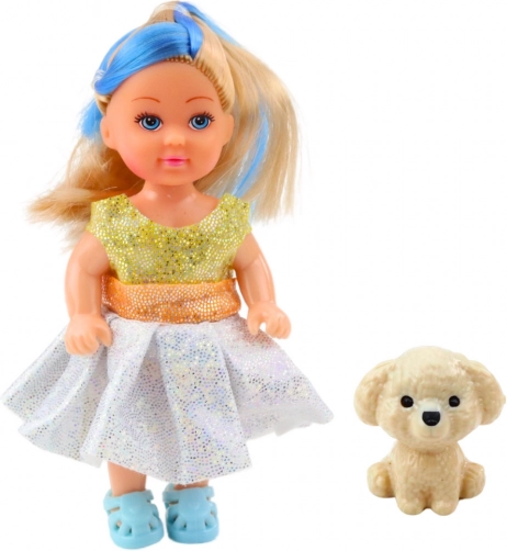 Mini pop van 12 cm hoog is het ideale speelgoed voor kinderen vanaf 3 jaar. Elke pop is anders dankzij unieke kapsels en jurkjes, vergezeld door een schattig wit hondje.