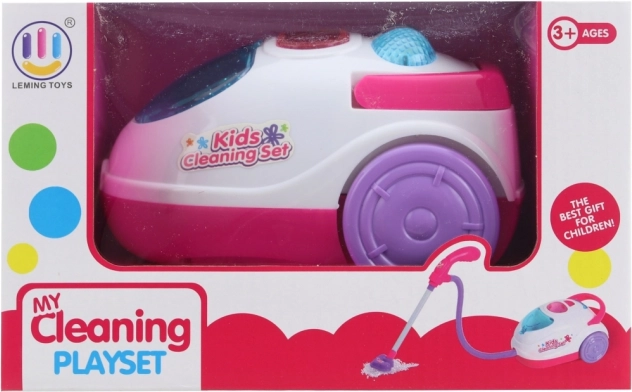 De stofzuiger heeft een lichteffect, wat het aantrekkelijk maakt voor kleine kinderen. De hele set is verpakt in een praktische doos, waardoor het gemakkelijk te vervoeren en op te bergen is.