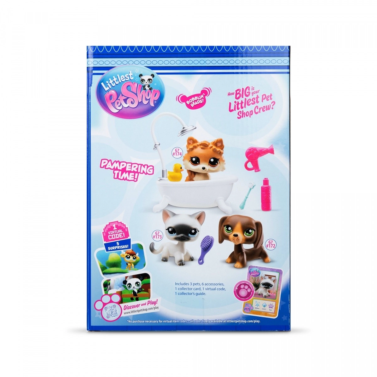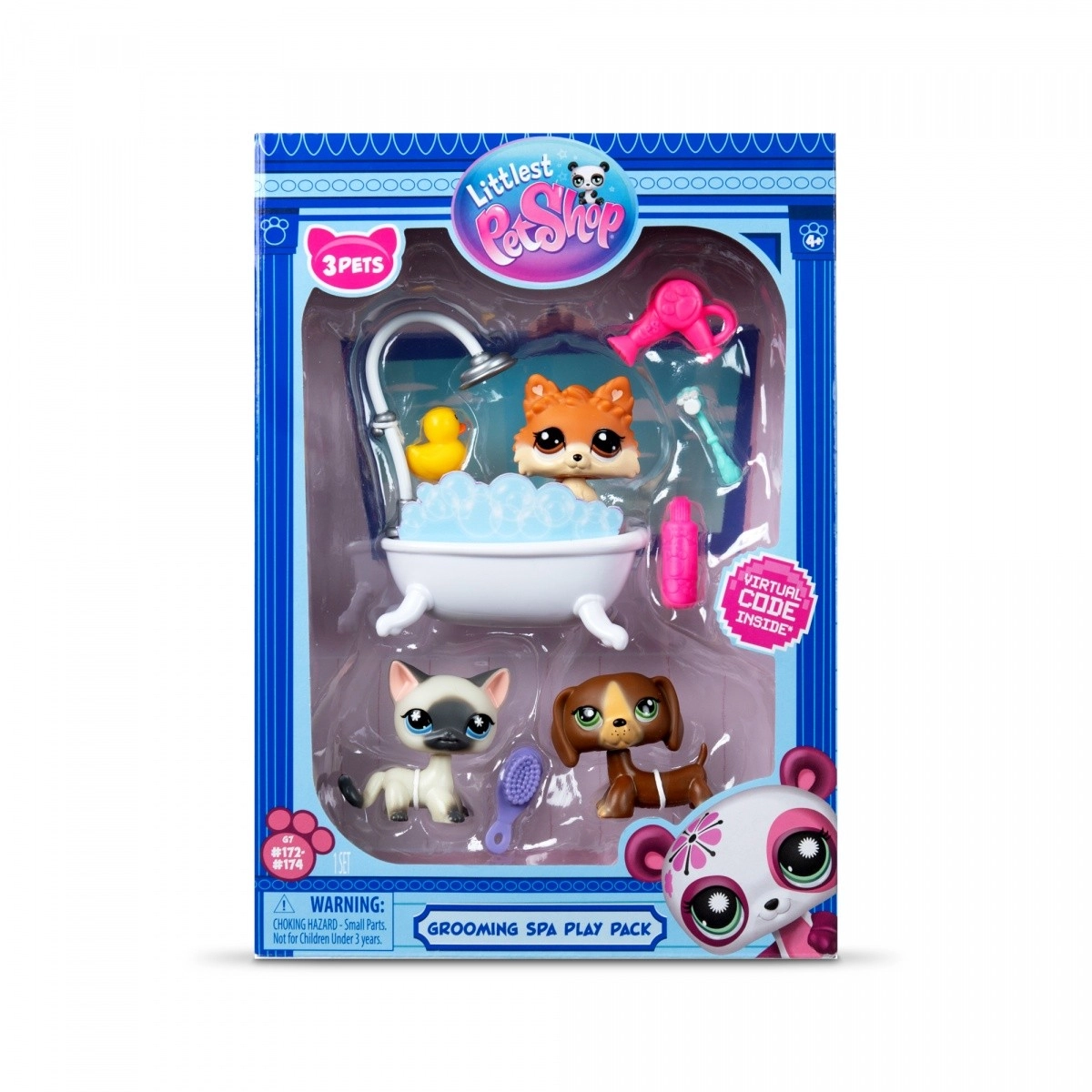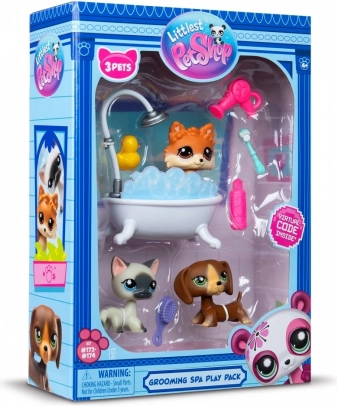 Littlest Pet Shop SPA-set G7 S3: 3 figuurtjes, 10 accessoires, verzamelkaart en virtuele code. Plezier voor verzamelaars en kinderen, huisdierverzorging en online bonussen.