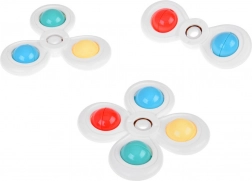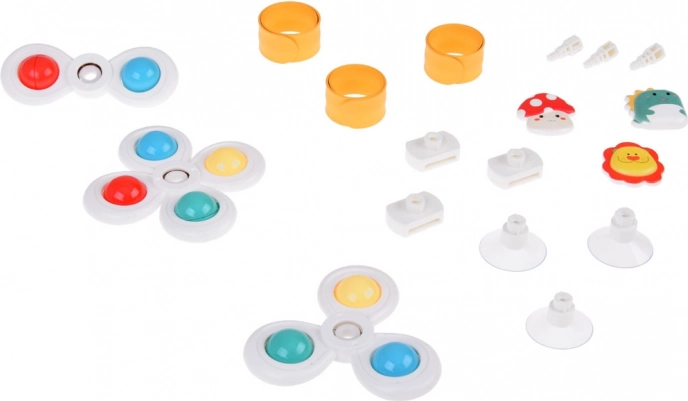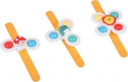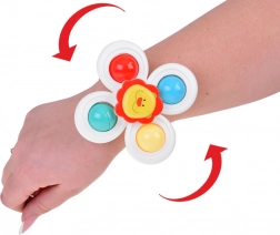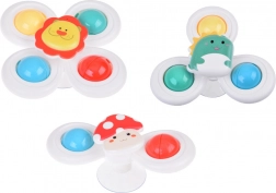 Dankzij speciale zwaairingen stimuleert de spinner de motorische vaardigheden van je kind en zorgt hij voor eindeloos speelplezier. De spinner is verkrijgbaar in 3 stuks, elk met een eigen zuignap en bandje, en brengt kleurrijke en leuke momenten.