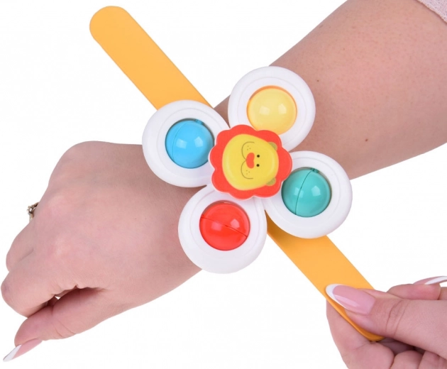 Maak de badtijd van je kinderen leuker met kleurige spinner-speeltjes met vrolijke motieven van een leeuwtje, een paddenstoel en een dinosaurus. De spinner kan eenvoudig op diverse oppervlakken worden bevestigd, zodat je kind zich vermaakt tijdens het eten of onderweg in de auto.