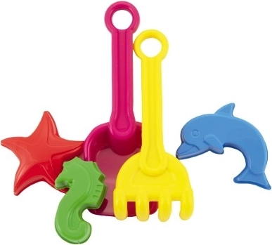 De plastic zandset voor kinderen zorgt voor veel plezier bij het bouwen van kastelen, het maken van zandtaartjes en het ontdekken van de wereld in de zandbak. Dankzij het duurzame materiaal en de afgeronde randen is de set ook veilig voor de allerkleinsten.