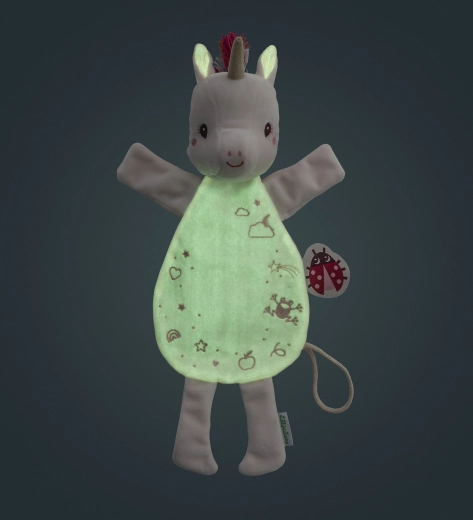 Ervaar magie met de luxe handpop eenhoorn Lena, die bedoeld is voor de kleinste kinderen. Deze handpop stimuleert niet alleen de verbeeldingskracht van kinderen, maar biedt ook veiligheid en comfort dankzij haar vermogen om in het donker te schijnen: