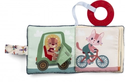 Het stoffen boekje met het thema van hondje Jules biedt je kleintje eindeloos plezier. Dankzij de klittenbandsluiting kan het gemakkelijk aan een kinderwagen of ledikant worden bevestigd, wat het hanteren en opbergen vergemakkelijkt. Het boekje stimuleert het zicht, gehoor en bevat een ingebouwd bijtspeeltje dat verlichting biedt voor kinderen tijdens het doorkomen van de eerste tandjes. Het boekje bevat geen tekst, maar moedigt met vrolijke illustraties aan tot het vertellen van eenvoudige verhaaltjes.