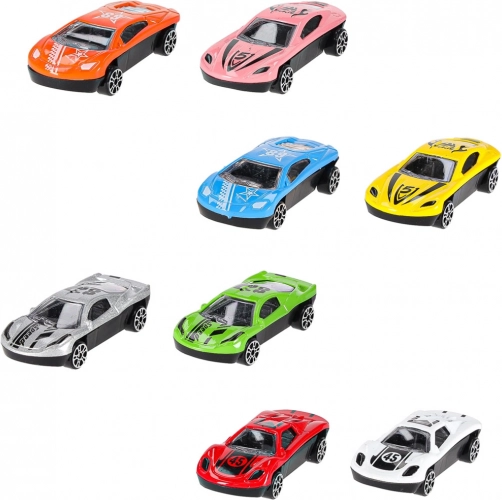 In de doos zitten 8 verschillende autootjes. Na de race laad je ze eenvoudig in de vakjes van de truck en is alles netjes opgeruimd.