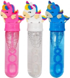 Ontdek de magie van bellen met de speelse bellenblaas met een eenhoornfiguurtje. Dankzij het compacte formaat en de zekere grip op het deksel is hij perfect voor uitstapjes, feestjes en dagelijks buitenspelen. De heldere vloeistof van 35 ml zorgt voor genoeg bellen en eenvoudig blazen.
