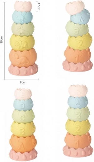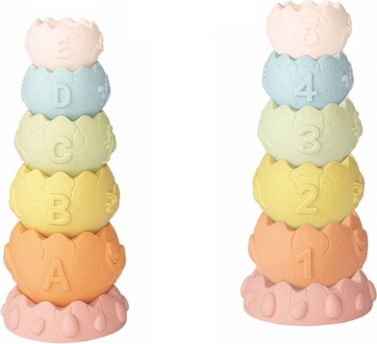 Ontdek de vrolijke stapeltoren geïnspireerd op dinosauruseitjes, ideaal voor de eerste verkenning van de wereld. Het speelgoed stimuleert de fijne motoriek, coördinatie en logisch denken van kinderen en moedigt tegelijkertijd zelfstandig spel aan.