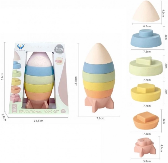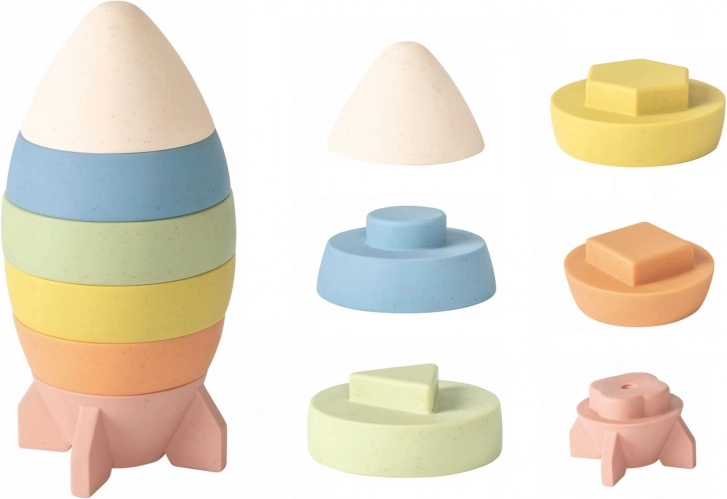 Een leuke stapelspeelgoed in de vorm van een raket, die kinderen op een natuurlijke manier helpt kleuren en vormen te herkennen, de fijne motoriek traint en de oog-handcoördinatie stimuleert. Ideaal voor de eerste ontdekkingen en het stapelen.
