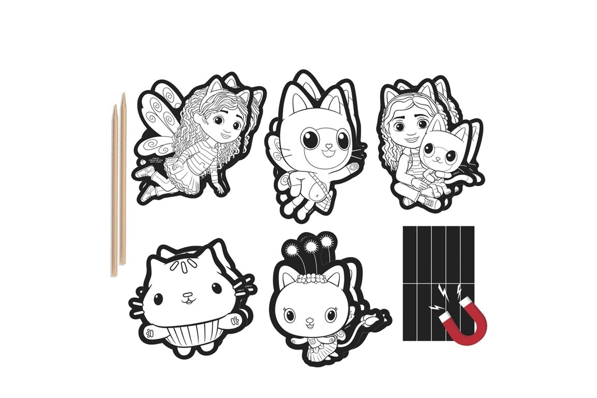 Deze creatieve set geeft kinderen plezier in het maken en ontwikkelt tegelijk de fijne motoriek, geduld en verbeeldingskracht. Motieven uit de populaire serie Gabby’s Magische Huis zullen alle kleine fans verheugen en elke creatie veranderen in een originele magnetische decoratie.