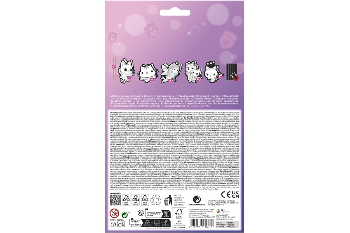 Neem de kraspen, kras het motief voorzichtig weg en onthul de levendige kleuren. Bevestig de voltooide afbeelding op de koelkast, een bord of elk metalen oppervlak en geniet van de vreugde van een zelfgemaakte decoratie.