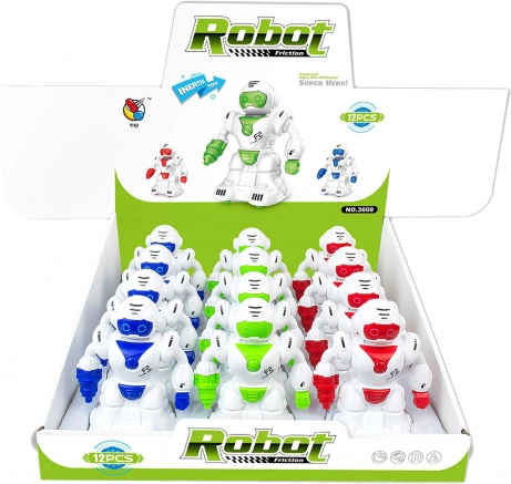 Robot met vliegwiel 12 cm in drie kleuren. Ideaal speelgoed voor kinderen, ontwikkelt mechanische vaardigheden.