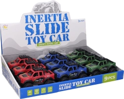 Terreinwagen met vliegwiel van 13 cm lang is het ideale speelgoed voor elke kleine racer. Verkrijgbaar in drie aantrekkelijke kleuren: rood, blauw en groen.