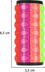 Deze slimme logische puzzel in cilindervorm biedt compacte fun voor urenlang speelplezier. De ringen draaien soepel en je kunt de gekleurde stukjes verschuiven met behulp van één lege plek – jouw doel is om de kleuren per rij uit te lijnen. De puzzel lijkt eenvoudig, maar verrast door zijn diepgang en speelplezier.