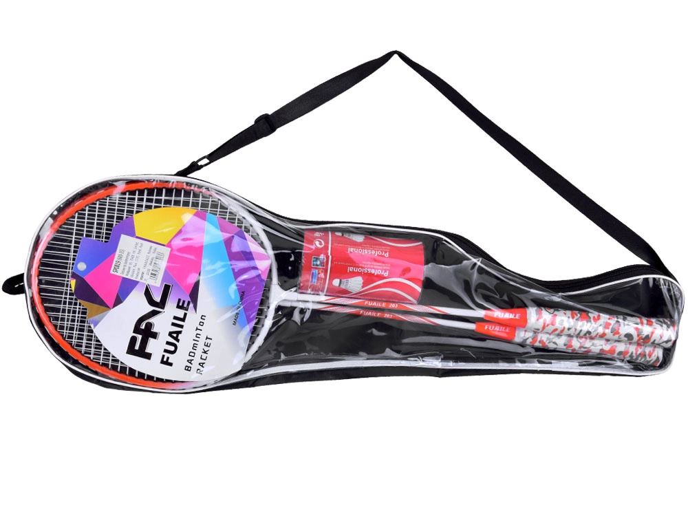 Deze badmintonsset bestaat uit twee rackets en twee shuttles, verpakt in een praktische hoes met een comfortabele handgreep. De racketframes hebben een zachte, antislip grip, waardoor het racket niet uit de hand glijdt, zelfs niet bij krachtige slagen. De shuttles zijn opgeborgen in een kleine kartonnen koker; de korf is van kunststof en de kop van zacht EVA-materiaal, wat hun duurzaamheid en gemak van terugslaan vergroot.