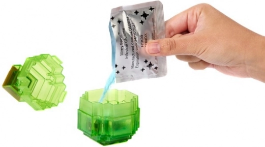De sets in de Minecraft Mini Mode Potion Brewing-collectie zitten vol spanning en verrassingen. Open elke prachtige elixercontainer en ontdek binnenin een mini-figuur en een zakje Slimy Brew Potion-deeltjes. Voeg ze toe aan de container samen met water (niet inbegrepen) en schud goed om het magische effect van de potion te onthullen. De kleur en het uiterlijk van je figuurtje veranderen dankzij het Color Reveal-mechanisme, wat een geheel nieuwe look geeft.