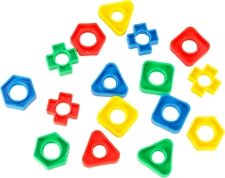 Deze educatieve bouwset is ideaal voor spelletjes als “koppel de vorm”. Tijdens het schroeven versterken kinderen de fijne motoriek, verbeteren ze het logisch redeneren en trainen ze de oog-handcoördinatie. Levendige kleuren helpen bovendien bij het leren van kleuren en vormen.