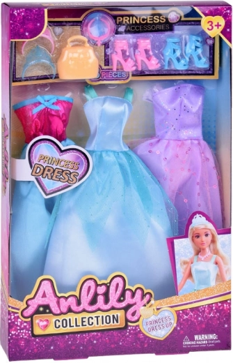 De set modieuze kleding voor poppen is de ideale keuze voor elke kleine ontwerpster die droomt van een eigen modeshow. Het bevat drie verschillende jurken, elk met een unieke snit en kleur, waardoor diverse stijlen voor verschillende gelegenheden gecreëerd kunnen worden.