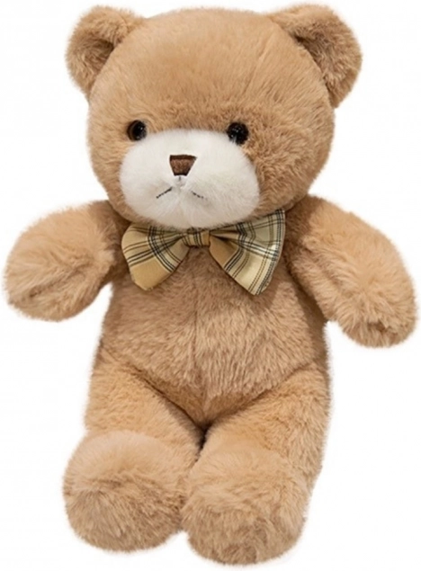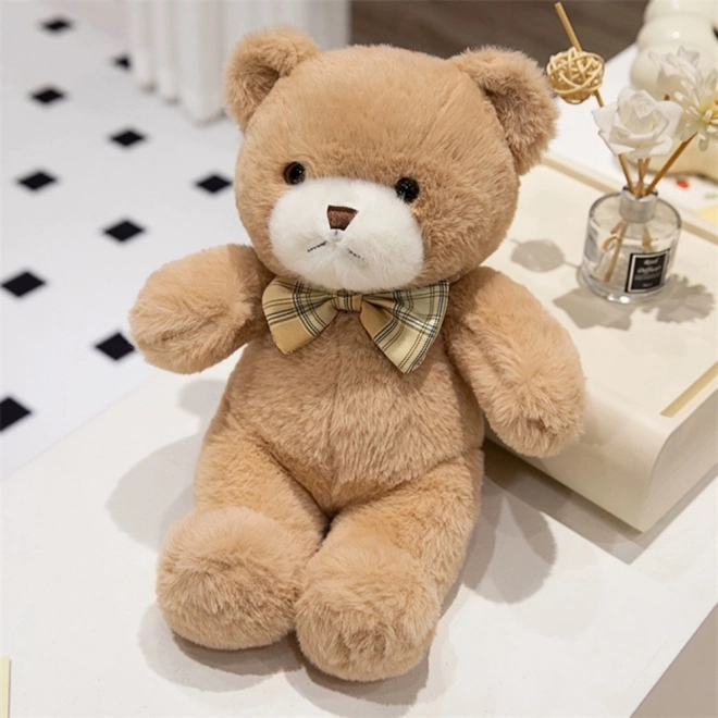 De teddybeer draagt een elegante geruite vlinderdas, wat hem een bijzondere charme geeft. Dankzij de stabiele constructie en proportionele vorm kan de beer zelfstandig zitten, waardoor hij een geweldige decoratieve toevoeging is aan de kinderkamer. Het is een ideale speelkameraad voor dagelijks spel en een perfect cadeau voor iedereen die klassieke, schattige pluchen knuffels waardeert.
