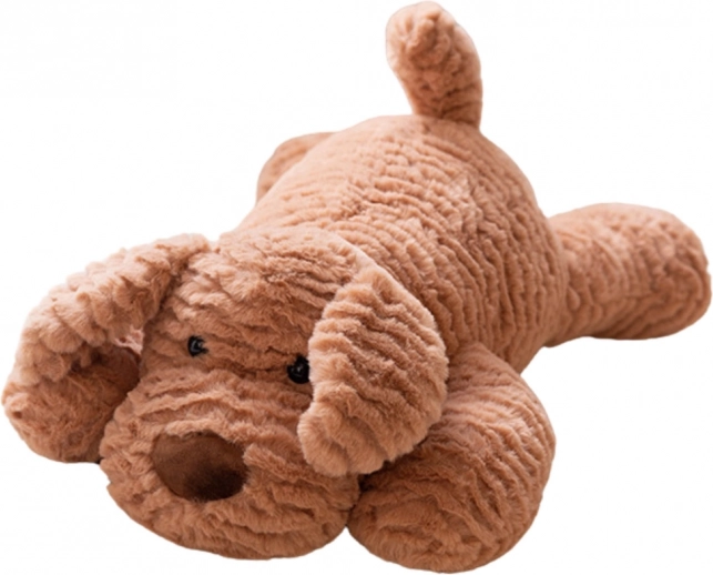 Zijn vriendelijke uitstraling met grote neus, lange oren en pluizige staart geeft hem een bijzonder toegankelijke en lieve look. Het diertje ligt in een comfortabele, natuurlijke houding, waardoor het op een echte puppy lijkt. Deze vorm stimuleert de kinderlijke verbeelding en creativiteit.