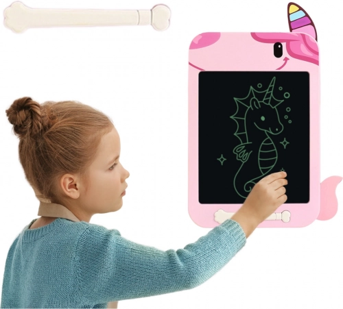 Het wisbordje in de vorm van een schattige eenhoorn is ideaal voor kinderen die graag tekenen en schrijven. Het gevoelige LCD-scherm maakt gemakkelijk tekenen en schrijven mogelijk, zonder papier of inkt. Kinderen kunnen zich focussen op hun creaties terwijl ze precisie en geduld leren. Met de ingebouwde knop wis je het hele scherm in één keer, zodat je meteen opnieuw kunt beginnen. Dit maakt het wisbordje tot een praktische en milieuvriendelijke oplossing.