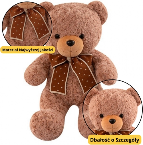 Deze pluchen beer is gemaakt van een aangenaam, licht krullend materiaal dat ideaal is om te knuffelen en te ontspannen. De beer heeft een stabiele constructie, afgeronde vormen en een vriendelijke uitstraling, waardoor hij een geweldige metgezel is om mee te spelen, een pluchen vriend om mee te slapen en een mooie decoratie voor de kinderkamer.