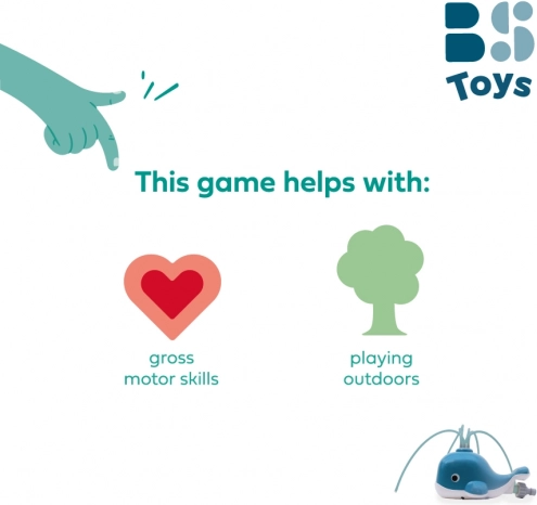 De water spuitende walvis is bedoeld voor zomers plezier in de buitenlucht. Het innovatieve ontwerp gebruikt bioplastic van tarwestro, wat het speelgoed licht, sterk en duurzaam maakt. Gemaakt van composteerbaar biomateriaal en 100% plantaardige oorsprong.