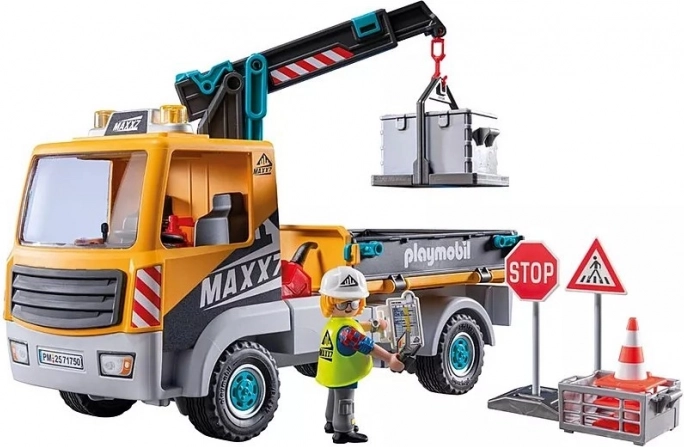 De Playmobil bouwvrachtwagen met kraan is een onmisbare helper op elke bouwplaats. Dankzij het afneembare dak en ruimte voor twee figuren is hij ideaal voor teamwerk. De uitschuifbare, draaibare kraangiek kan zware ladingen hanteren, terwijl de kantelbare laadbak en uitklapbare zijborden het laden en lossen vergemakkelijken.