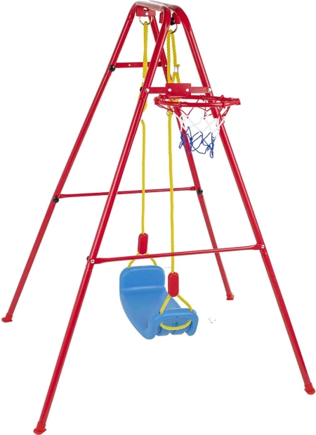 De set is ideaal voor buitengebruik in de tuin en stimuleert de grove motoriek, coördinatie en gezonde beweging van kinderen. Dankzij de eenvoudige montage is hij snel klaar voor gebruik. Heldere, intense kleuren nodigen uit tot spelen en de schommel kan een belasting tot 80 kg aan, zodat zowel jongere als oudere kinderen ervan kunnen genieten.