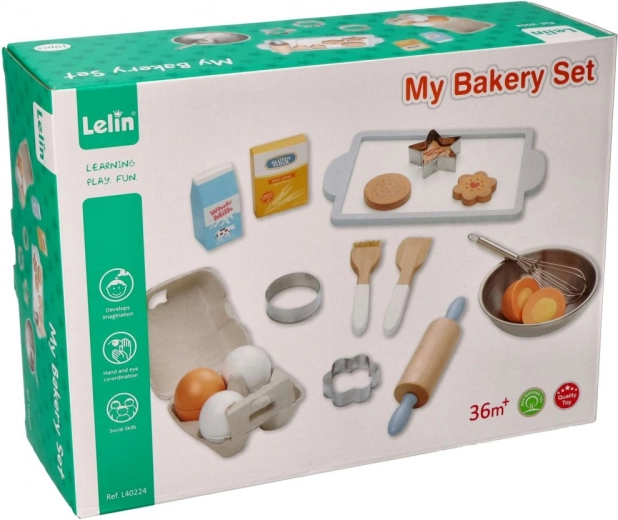 Deze rijk uitgeruste bakkersspeelset biedt kinderen een authentieke keukenervaring. Dankzij het duurzame hout en roestvrij staal zijn de onderdelen veilig, prettig in de hand en eenvoudig te onderhouden. Kinderen kunnen mixen, deeg uitrollen, uitsteken en “koekjes” versieren – net als volwassenen.