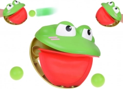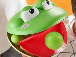 - Plaats één balletje in de bek van de kikker, alsof het op de tong ligt.