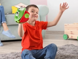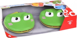 De set bevat twee slim gevormde katapulten die dankzij verstelbare klittenbandriemen gemakkelijk aan de grootte van je hand kunnen worden aangepast. Elke katapult is ontworpen als een schattige kikker, die door zijn constructie eenvoudig te bedienen is.