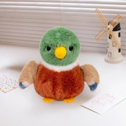 De pluche eend is een prachtig speeltje in vele kleurtonen dat zeker de aandacht trekt. Gemaakt van zachte, aangename pluche, combineert hij tinten groen, bruin, geel en blauw, wat een realistische weergave van een wilde eend creëert. Het ronde kopje, de uitgespreide vleugeltjes en de kenmerkende gele snavel geven hem een unieke charme die de harten van zowel kinderen als volwassenen verovert.