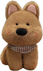 De pluchen bruine hond is een ontzettend schattige knuffel die meteen de harten steelt. Hij is met zorg ontworpen, met zachte vacht, een grote zwarte neus en subtiele rode wangetjes. Zijn lieve zwarte ogen en rechtopstaande oren geven hem extra charme, nog eens benadrukt door een fraaie sjaal in een bruine tint.