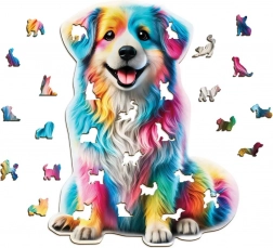 WOODEN CITY houten puzzel met 250 stukjes in de vorm van een regenbooghond biedt een unieke legervaring. Dankzij laser-gesneden stukjes in de vorm van dieren en de milieuvriendelijke verpakking onderscheidt hij zich door zijn originaliteit.